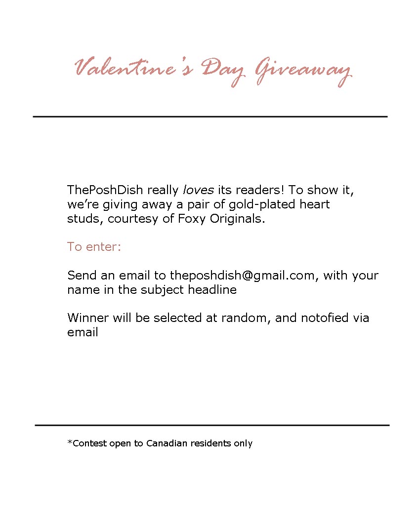 To win your own pair of the studs pictured above, click here to like the Foxy Originals page on Facebook in order to be eligible, then see the poster below for instructions. Contest closes on February 16 at 12 p.m. Good luck!