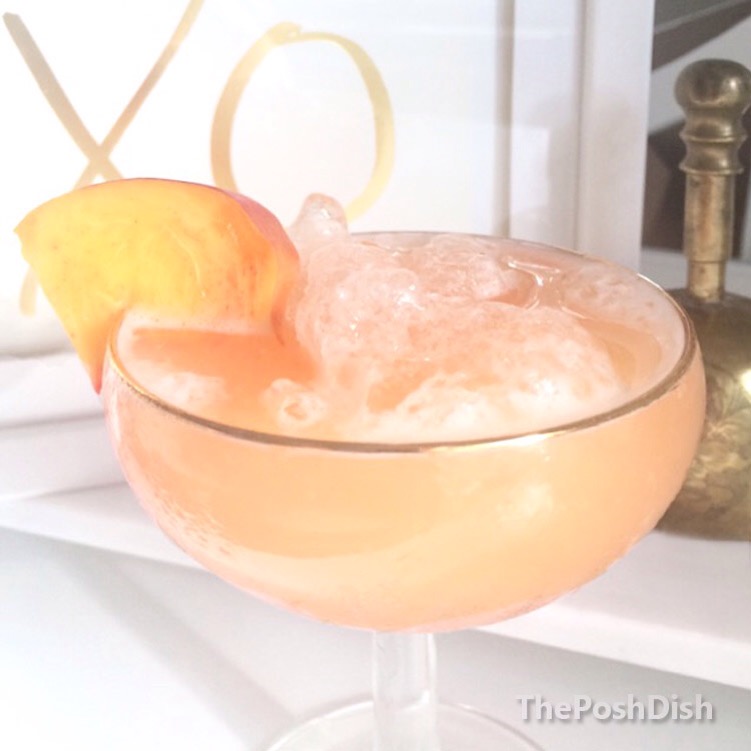 3. Pour into glass and garnish with a slice of peach.